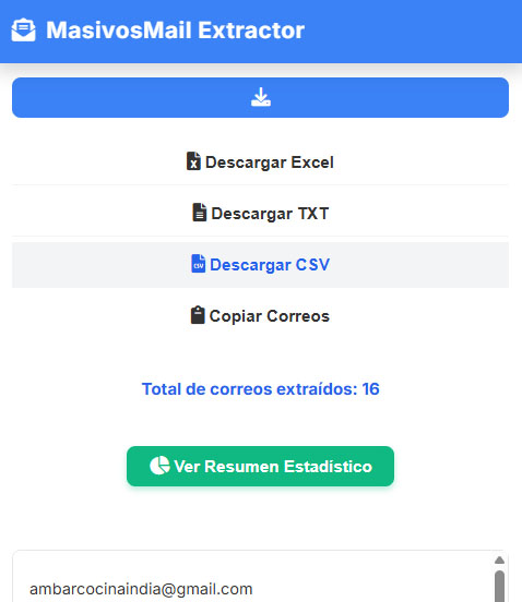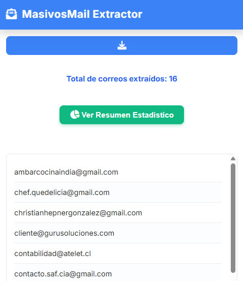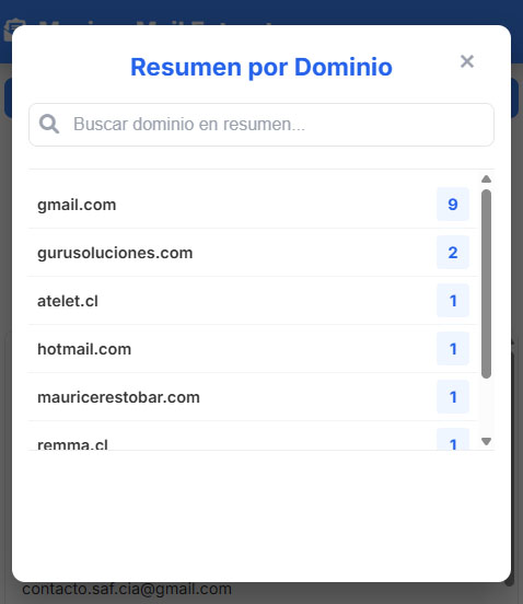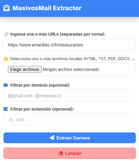 Extrae correos electrónicos con precisión desde sitios web, documentos y archivos empresariales. Desarrollada con lógica basada en Inteligencia Artificial, esta potente herramienta identifica, filtra y clasifica miles de correos en segundos, incluso desde múltiples fuentes como PDF, Word, Excel, TXT y HTML.